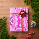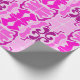 Roll of decorative wrapping paper featuring a vibrant pink and purple abstract pattern, with symmetrical floral and geometric shapes on a light background.