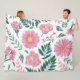 Vibrant Pink Floral Pattern with Lush Greenery Fleecedecke