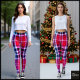 Vibrant Red Pink Aqua Modern Plaid Leggings