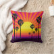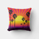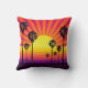 Vibrant Retro Sunset Palm Tree Throw Pillow on Whi Kissen