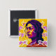 This is a colorful and stylized digital illustration featuring a portrait of a person with dark, wavy hair, rendered in vibrant shades of yellow, purple, orange, and white. The face is in profile, looking towards the left, with striking orange eyes. The background is a bright yellow with abstract white lines forming geometric shapes and flowing purple and white smoke-like elements. The overall style is bold, graphic, and somewhat surreal, with a modern and psychedelic aesthetic. The abstract elements surrounding the portrait add an artistic and intriguing dimension, possibly representing thoughts, energy, or a dreamlike state. The use of vivid colors and contrasting tones creates a visually captivating image.