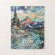 Vibrant Zion River Sunset Retro Van Gogh Watchman Puzzle
