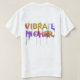 Der T - Shirt enthält den Text "Vibrate Higher" in einem lebhaften Farbspektrum. Jeder Buchstabe fließt wie eine Welle in den nächsten und schafft so einen dynamischen und dynamischen Look.