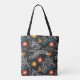Tauchen Sie ein in eine lebendige Verschmelzung von Farbe und Form mit diesem abstrakten Blumenbeutel. Mit stilisierten Blume in lebhaften Rot-, Orange- und Gelbtönen und fließenden, glänzenden Linien und verstreuten Blau- und Weißpunkten, das ganze Set vor einem schwarzen Hintergrund, strahlt dieser Totbeutel eine kühne und energetische Ästhetik aus. Das Zusammenspiel lebendiger Elemente schafft einen bemerkenswerten Kontrast und ist somit eine ideale Wahl für diejenigen, die eine einzigartige und künstlerische Touch suchen. Diese Tasche ist für Liebhaber der modernen botanischen Kunst und des abstrakten Ausdrucks.