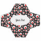 Dieser Fußball hat ein lebendiges abstraktes Muster von hellroten Kugeln in größeren weißen Kugeln auf schwarzem Hintergrund. Passen Sie Ihren Text im weißen Oval mit der Vorlage an.