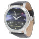 Uhr, Klassische Damenuhr mit schwarzen Lederarmband