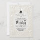 Announce your black-tie union with the timeless elegance of a cream baroque filigree design. A sophisticated, monochromatic choice for formal romantic nuptials.This design features a classical composition centered around a faux 3D embossed relief effect, simulating the look of sculpted paper without the raised texture. Two graceful swans curve their necks to form a central heart, framed by an intricate border of baroque scrollwork, roses, and tulips in soft off-white and cream tones. The layout utilizes a formal typographical hierarchy, pairing charcoal grey serif fonts with elegant script to ensure high contrast and readability against the neutral background.This is a flat printed image with a faux embossed effect, not actual raised material.
