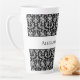 This exquisite latte mug features a timeless Victorian design, showcasing a classic black and white damask pattern. The unique color-morph effect adds a touch of modern elegance to this vintage-inspired piece. Perfect for enjoying your favorite beverage in style, this mug is a luxurious addition to any home.