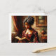 This postcard features a wealthy Victorian black woman reading--a richly detailed artwork of a dark-skinned woman in a deep red gown, absorbed in a book as she sits by the window. With her elaborate hairstyle, pearl earrings, and timeless surroundings, the image evokes classic elegance and historical romance.