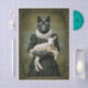 A striking anthropomorphic portrait features a refined wolf dressed in elegant, Victorian inspired clothing while gently holding a serene white lamb. The wolf’s dark fur contrasts beautifully against the crisp ruffled collar and the gown adorned with lace and intricate detailing. The lamb rests calmly in gloved hands, adding a symbolic and slightly surreal twist reminiscent of folklore and classical portraiture. Set within an ornate antique style frame and a softly lit painterly background, this design blends dark academia, whimsy, and storytelling charm—ideal for dramatic and imaginative craft projects. Artwork similar to classical portrait style anthropomorphic paintings……COLOR COMBINATIONS: Forest green, black, cream, gold, olive, beige, gray…..PERFECT FOR: Decoupage, mixed media, collage, journals, dark academia décor, gothic cottagecore themes, furniture upcycling, wall panels, storybook projects, and dramatic vintage inspired crafts.............…... 🖤 NOTE 1. This design is available in two options: Left and Right. You can find them in the Collection shown below. If they don’t appear there, try searching for their unique identifiers: ES7L for the Left design and ES7R for the Right version….🖤 NOTE 2. The 18 lb tissue is a great choice if you like a little extra strength—it's easier to handle, resists tearing and allows for gentle repositioning. It’s also more opaque, making it perfect for darker surfaces. The 10 lb tissue is wonderfully lightweight and flexible giving you that smooth, blended finish. It’s ideal for layering on furniture or smaller projects so treat it gently and it will reward you with stunning results!.….🖤 NOTE 3. All items with this particular design share my unique identifying “Letter/s Number/s” label in the title for easy searching. …..🖤