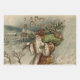 Vintage Santa Claus Carrying a Christmas Tree in the Snow - Since when does Santa actually bring a tree with him? This image is based on a vintage Christmas Card from the late 1800s. Back then, Santa didn't always wear red. In this Santa Claus illustration, St. Nick is wearing a warm brown suit, and his bag of goodies is green. Santa Claus is walking through the snow, with a Christmas tree on his back. The snowstorm looks cold! Early cards of vintage Santa showed Santa in brown, green and red suits in the late 1800s. This card says "A Merry Christmas" -- and even though our Santa is wearing a brown suit, after all, he deserves a bit of a wardrobe change now and then! He's carrying a bright new drum in his package. I wonder what else Santa has in his toy bag?