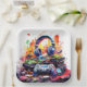 Teller der Geburtstagsparty. Ai Aquarellbild von Kopfhörern, Videospiel-Controller und anderen Gaming-Zubehör.