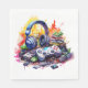Papierservietten der Geburtstagspartei. Rot, Blau, Gelb und Grün. Ai Aquarellbild von Kopfhörern, Videospiel-Controller und anderen Gaming-Zubehör.