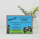 Eine Geburtstagsfeiereinladung für ein Videospiel oder ein Party für Game Truck. Das Design verfügt über einen Videospiel-Controller, einen Spielstick oder einen Remote-Controller. Der Hintergrund ist ein Bildschirm in blau und grün, um einen Himmel und Gras zu simulieren. Der Text lautet "Game On!" "Jamison Andrews hat Level 8 erreicht". Personalisieren Sie diese Einladung für die Geburtstagsparty Ihres Sohnes. Die Rückseite hat viel Platz für weitere Informationen.