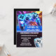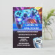 Eine moderne und coole Illustration eines Betrages durch einen blauen Plastikvideospielcontroller, der den Geburtstagsjunge oder Mädchen im Alter auf der digitalen Leiste hat, hat Vorlagen in Weiß auf einem Hintergrund aus schwarzer und neoner Sternexplosion, die personalisiert sein können. Zwei zusätzliche Kontrollen befinden sich vorne und rechts unten. Diese sind ideal für Gaming Party- und Gaming-Feiern. Ideal für Erwachsene und Kinder.