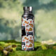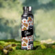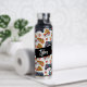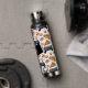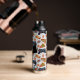 Personalisierte Wasserflasche mit Pizzaslicen und Videospielecontrollern.