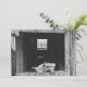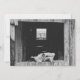 Schwarz-Weiß-Bild einer alten Rinderranch, auf einer großen Insel Hawaii, mit einem Kuhschädel, der im Fenster ausgeschnitten ist.