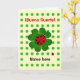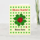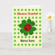 Wunsch jemand "¡ Buena Suerte!" = "viel Glück!" auf spanisch und personifizieren Sie die Karte mit ihrem Namen. Der Entwurf ist von einem stylized Marienkäfer auf einem großen vier-Blätter getriebenen glücklichen Klee, wenn mehr Kleeformen einen grünen gemusterten Hintergrund bilden. Ein anderer kleiner Marienkäfer versteckt sich im Muster.