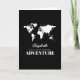 Die Reise-Wanderer-Grußkarte, die einen schwarzen Hintergrund kennzeichnet, der zu jeder möglicher Farbe geändert werden kann, eine Weltkarte, Druckbolzen fügte verschiedenen Bestimmungsorten und einer viel Glückschablone hinzu. Klicken Sie an "personifizieren" Knopf für weitere Kundenbezogenheit einschließlich das Verschieben der Buttone auf die gewünschten Länder an.