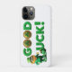 Ein lustiger Leprechaun in einem grünen Anzug mit einem roten Bart und einer Goldmünze in seiner Hand wünscht Ihnen viel Glück!