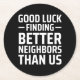 viel Glück findet bessere Nachbarn als wir Runder Pappuntersetzer