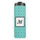 Dieser elegante türkisfarbene und weiße Quarrefoliendesign hydratisierende thermische Tumbler ruft Sie an. Mit dem persönlichen Monogramm ist es die perfekte Größe, wenn man draußen und draußen ist, ob beim Wandern in den Bergen oder einfach nur beim Training im Fitnessraum. Die doppelwandige Isolierung sorgt dafür, dass Ihr Wasser oder Getränk stundenlang kalt bleibe, was für jemanden wie mich wichtig ist, der ohne erfrischende Schläge keine Minute verbringen kann.
