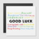 Ein Design, das Viel Glück in vielen Sprachen wie Spanisch, Französisch und Vietnamesisch sagt. Auch sagt es in einer Vielzahl von Farben wie rot, gelb und blau!