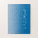 Das Jigsaw-Puzzle mit hellblauer bis dunkelblauer Farbskala enthält "Viel Glück, [NAME]" in einem Schriftart mit weißem Skript am unteren Rand. Personalisieren Sie den lustigen Text in der Sidebar. Das ist ein großartiges Geschenk für jemanden, der eine Herausforderung Liebe. Copyright ©Claire E. Skinner. Alle Rechte vorbehalten.