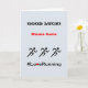 Viel Glück-Karte für einen Läufer, mit einem Piktogramm von drei Läufern und dem Text #LoveRunning mit einem roten Herz. Personalisieren Sie die Karte, indem Sie den Namen des Läufers eingeben. Sie können auch den Gruß auf der Vorderseite ändern, wenn Sie möchten - vielleicht bevorzugen Sie "Go for it!" oder "Run schneller!" oder vielleicht "Have fun!". Innen ist der Text auch anpassbar, und liest derzeit "Viel Glück im Marathon. Du kannst es tun!"