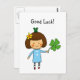 viel Glück Girl mit vierblättriges Kleeblatt, die Hintergrundfarbe ist anpassbar. Sie können dieses Design leicht personalisieren, indem Sie den Knopf "Anpassen" drücken.