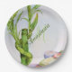 Lucky Bamboo Stalk ist so eine wunderschöne Art, jedem viel Glück zu wünschen, was immer sie tun - vielleicht in Rente gehen, vielleicht auf etwas Anderes in ihrem Leben, sogar in einen anderen Teil der Welt ziehen ... Schöne grüne Fronds inmitten rosa, lila, orange und blau gefärbter Felsen.. www.fancifulwatercolors.ca Benutzerdefinierte personalisierte monogramm Party Papier Teller für jeder Anlass. Das Watercolor Designbild stammt aus der Designerkollektion. Genießen Sie die Koordination Ihres Party-Ensembles, um Ihr eigenes Thema auszudrücken. Wenn Sie etwas Besonderes gewollt haben, kontaktieren Sie mich bitte unter sue.chorney@shaw.ca.