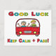 Viel Glück Driving Test zeigt einen Lernertreiber, der den Test mit einer Viel Glück-Meldung und einem unten Behalten Hinweis für Ruhe und Durchlauf durchführt. Ein lustiges Design für diejenigen, die ihre Prüfung machen wollen.