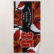Dieses kühn gestaltete Strandtuch für Basketballspieler verfügt über Basketballbälle unterschiedlicher Größe mit rot-schwarzen Mannschaftsfarben, die auf rotem Hintergrund gedreht werden, und über eine prominente Jerseynummer, die sich über einen farblich abgestimmten Streifen erstreckt, auf dem Sie auch den Namen, den Teamnamen und den Maskottnamen des Athleten personalisieren können - durch katz_d_zynes