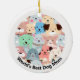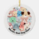 Viele farbenfrohe Hunde Design Keramik Ornament mit anpassbarem Text in weißem Ring auf beiden Seiten.