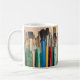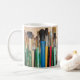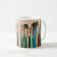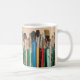 Foto einer Reihe von farbigen und abwechslungsreichen Pinseln. Bild auf beiden Seiten der Tasse.