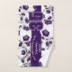 Dieses Teamgeist-Handtuch für Fußballspieler bietet abwechslungsreiche Fußballbälle mit lila-weißen Mannschaftsfarben, die auf weißem Hintergrund gedreht wurden, und eine herausragende Trikotnummer in lila Farbe mit einem lila Farbstreifen, auf dem man auch den Namen, den Teamnamen und den Maskottennamen des Athleten in Weiß einstellen kann - von katz_d_zynes