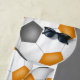 Dieses sportbezogene Strandtuch für Fußball-Spieler verfügt über eine Reihe von orangefarbenen, grauen und weißen Fußbällen, die auf weißem Hintergrund gedreht wurden - personalisieren Sie den Namen und die Nummer des Athleten sowie den Namen des Teams und des Maskottchens - von katz_d_zynes