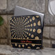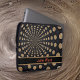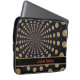 Dieser Laptop-Ärmel zeichnet sich durch ein abstraktes Design aus, das mit einem anpassbaren Band für unseren Namen oder unsere Initialen ausgestattet ist. Dieses Monddesign beinhaltet eine schwarze Band mit kontrastfarbenem Rahmen und Ihren Namen oder Ihre Initialen in rot.
