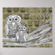 Ein Ausdruck aus einem originalen, gemischten Medium, an dem die Eule zeichnete, um Papier zu finden. Eine tolle Geschenkidee für Eulenliebhaber.