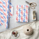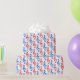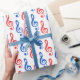 Dieses Papier-Design bietet viele drei Klettkleckssymbole rot oder blau gefärbt. Es wäre eine lustige Verpackung für Geschenke für einen Musiker, Sänger oder Komponisten.