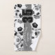 Dieses Teamgeist-Handtuch für Fußball-Spieler bietet abwechslungsreiche Fußball-Bälle mit schwarz & grau Teamfarben, die sich auf weißem Hintergrund gedreht haben, und eine prominente Trikotnummer in schwarz mit einem grauen Farbstreifen in voller Länge, auf dem Sie auch den Namen, den Teamnamen und den Maskottnamen des Athleten in Weiß anpassen können - von katz_d_zynes