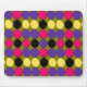 Dieses helle Mousepad ist mit lila, rosa gelben und schwarzen Flecken bedeckt, die in Reihen angeordnet sind, die durch dunkelgrüne Bereiche voneinander getrennt sind. Dieses fantastische abstrakte erinnert an eine Mauer, die nach einem Paintballspiel mit Farbtupfern bedeckt ist.