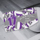 Dieses farbenfrohe Handtuch für Volleyballspieler bietet lila, graue und weiße Volleybälle, die sich auf weißem Hintergrund drehen, und eine herausragende Trikotnummer in lila Farbe, die sich über einen grauen Streifen in voller Länge erstreckt, auf dem Sie auch den Namen des Athleten, den Teamnamen und den Maskottnamen - von katz_d_zynes - personalisieren können