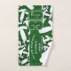 Dieses sportliche Handtuch für Volleyballspieler bietet verschiedene Größen grüne und weiße Volleybälle auf weißem Hintergrund und eine prominente Trikotnummer in Grün mit einem katz- und grüne Farbstreifen, auf dem Sie auch den Namen, den Teamnamen und den Maskottnamen des Athleten personalisieren können - durch katz_d_zynes