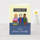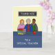 Eine Abbildung von drei Lehrern, die hinter einem Schreibtisch stehend sind, begleitet von dem Text "Vielen Dank an einen Lehrer".