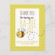 Fügen Sie Ihre Veranstaltungsdetails hinzu, um diese moderne, unterhaltsame BEE (BA-BEE Buzzing) Babydusche mit Dankeschön-Karte zu personalisieren. Sehr niedlich und trendig mit gelben und weißen Polka-Punkten, niedlicher Honigbiene mit Komfort und trendiger gelber und brauner Typografie. Um passende Partyware anzuzeigen, rufen Sie die angehängte Auflistung auf.
