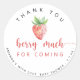 Niedliche Baby Dusche Einladungskarte mit Aquarellbild von Erdbeeren. Im Text steht "Beere viel für dich" Matching Items zur Verfügung.
