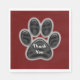 Sie planen ein Begrüßungspicknick, Mittag oder Empfang? Karo diese Servietten aus dem Mittagessen, die mit einem schimmernden schwarzen Pfotendruck in hellgrau umrissen sind, zusammen mit den Worten "danke". Das Design ist Set vor einem dunkelroten Hintergrund, der mit Ihren Wertungsworten angepasst werden kann. Ideal für Tierpfleger oder Freiwillige für Heimunterkünfte.
