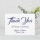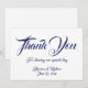Elegantes Script Custom Wedding Dankeschön Karte. Anpassbarer Text, Namen und Datum. Blau und weiß