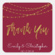 Vielen Dank, Burgundy und Gold Foil String Lights Quadratischer Aufkleber